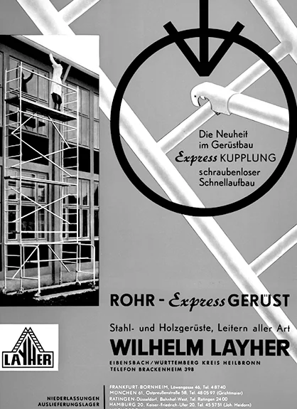 fra Layher ble fra 1978 brukt til nybygg og renovering.